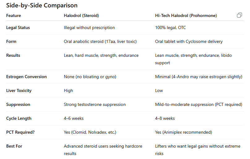 Halodrol the prohormone is a safer all be it less effective alternative, however it is legal, it is a powerhouse blend and while it won't hit as hard as the steroid, it offers lean, dry gains and strength boosts without the health or legal risks.