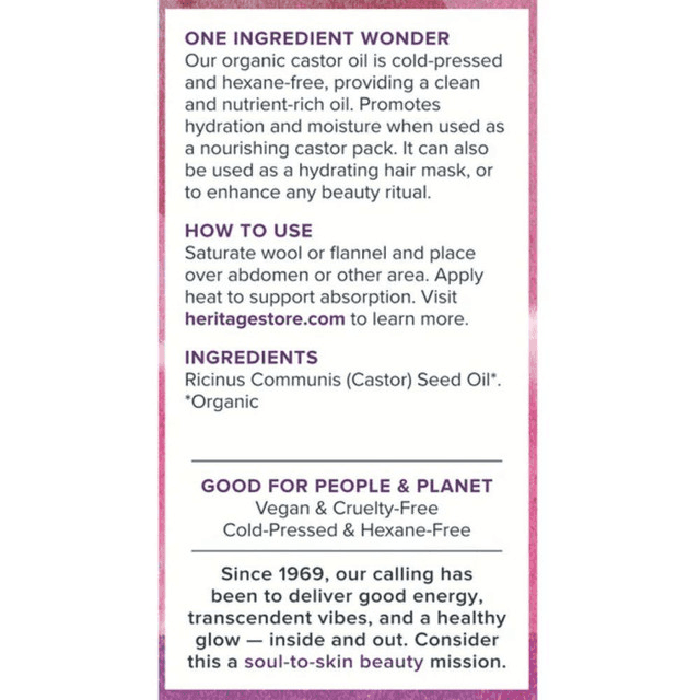 Heritage Store Organic Castor Oil 16oz Highlights & Benefits