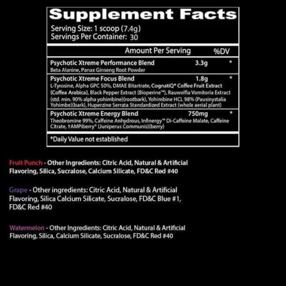 Insane Labz Psychotic Xtreme 30 Servings Ingredients