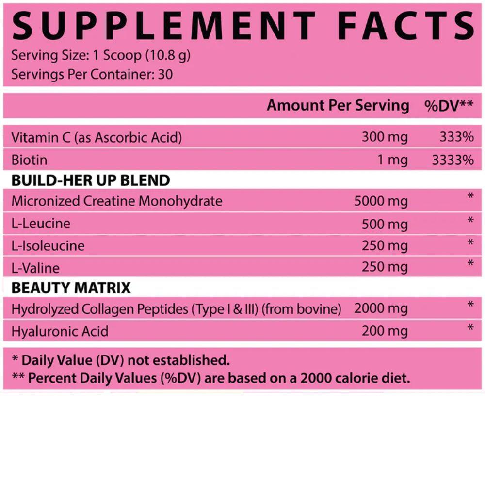 Nutrex Creatine for Women is a full-body performance and beauty formula that helps you build lean muscle, recover faster, and enhance strength. Infused with collagen, biotin, and hyaluronic acid, it supports healthy skin, hair, and nails while keeping you hydrated and bloat-free.