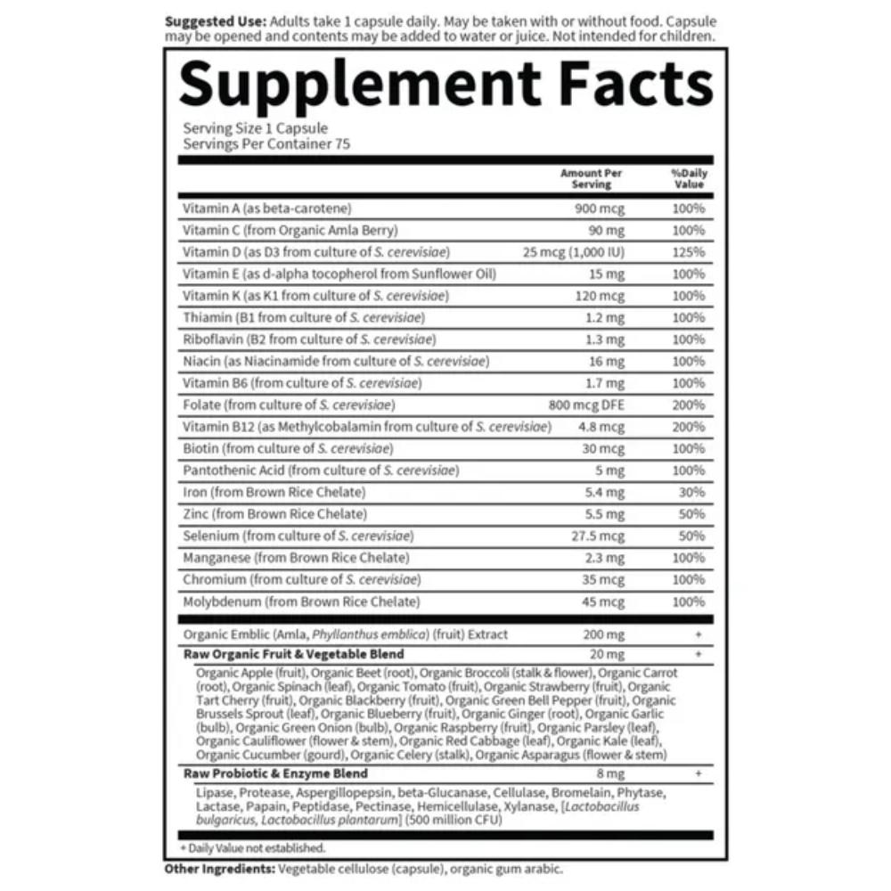 Garden of Life Vitamin Code RAW ONE for Women 75 Caps Ingredients