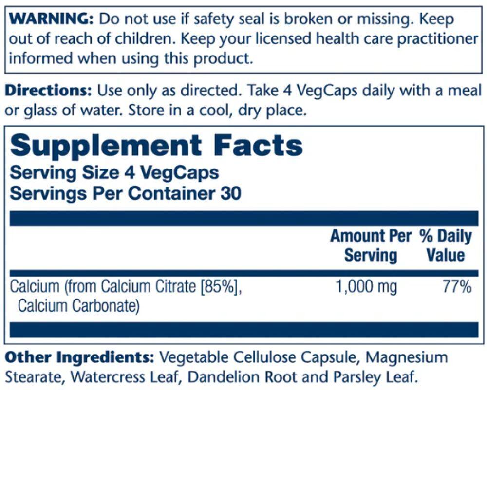 Solaray Calcium Citrate 1,000mg 120 Capsules Ingredients