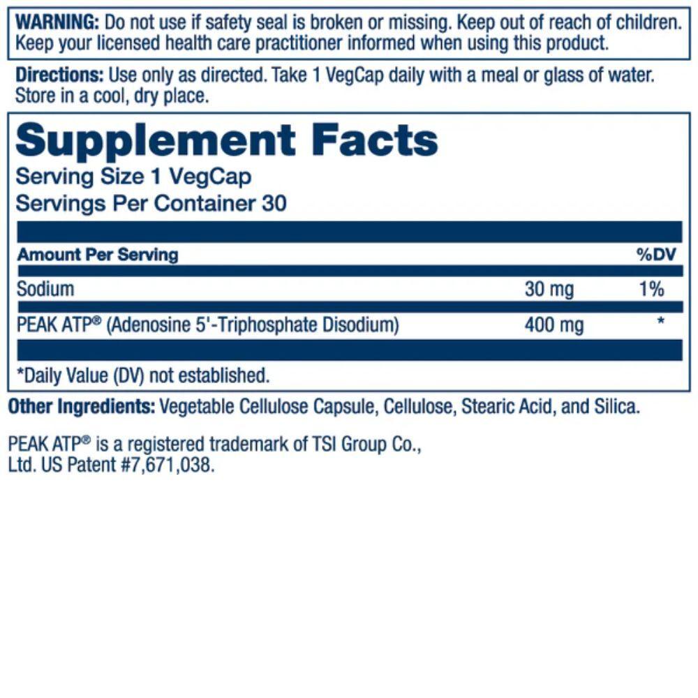 Solaray Peak ATP 400mg 30 Capsules Highlights & Benefits